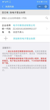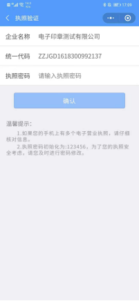 2)选择需要签章的电子营业执照,并输入执照密码进行验证。