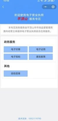 1)在电子营业执照小程序首页“其他应用>地方服务>地方频道(河南)>地市导航”中,选择“平顶山专区>电子印章/自助签章”。