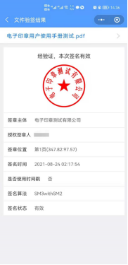2)展示文件和文件验签结果,点击上方文件名称预览已上传的文件,下方展示验签结果。