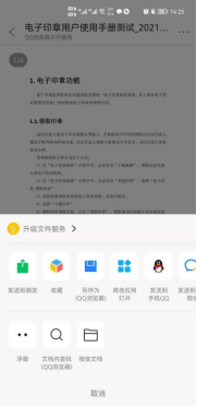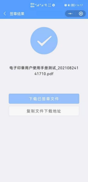 8)签章成功后,可选择“下载已签章文件”,打开预览已签章文件,点击右上角“…”选择保存方式。也可点击“复制文件下载地址”到浏览器中打开并下载文件。