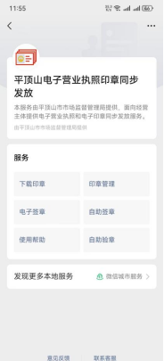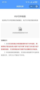 使用电子营业执照小程序“电子印章’盖章的电子文件,可以通过本服务进行自助验章。