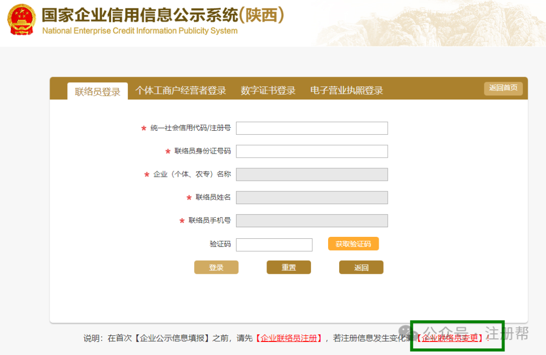 3、企业变更股东时务必进行联络员变更,否则后期无法登录公示系统。