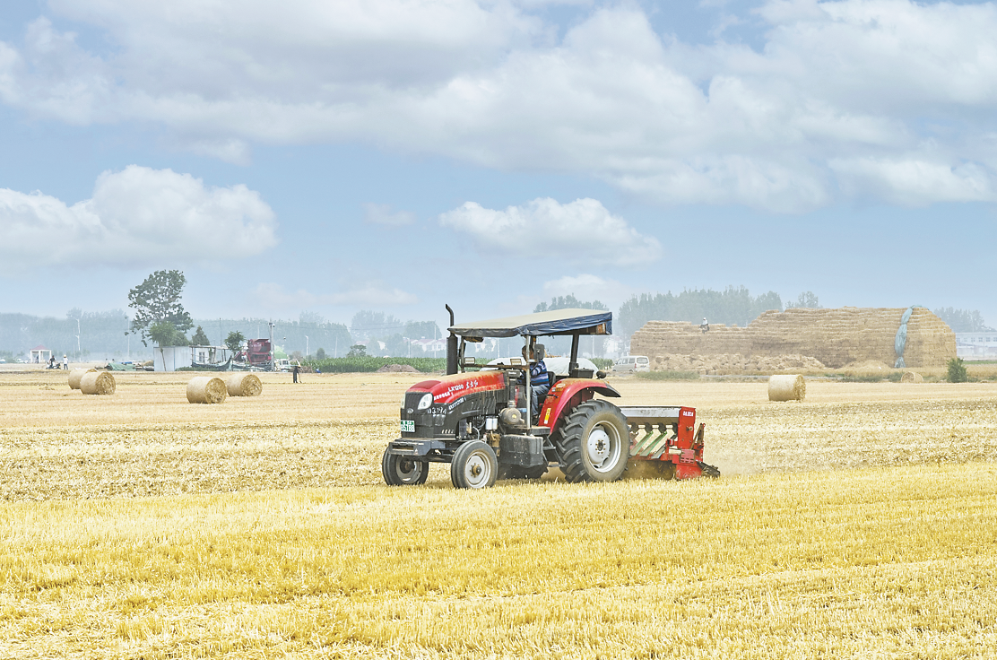 6月3日,农机手驾驶播种机在宝丰县李庄乡马楼村附近播种玉米。该乡抓住雨后墒情改善的有利时机,组织旋耕机、播种机等大型机械到辖区各村帮助群众抢墒播种玉米,努力为秋粮稳产高产夯实基础。