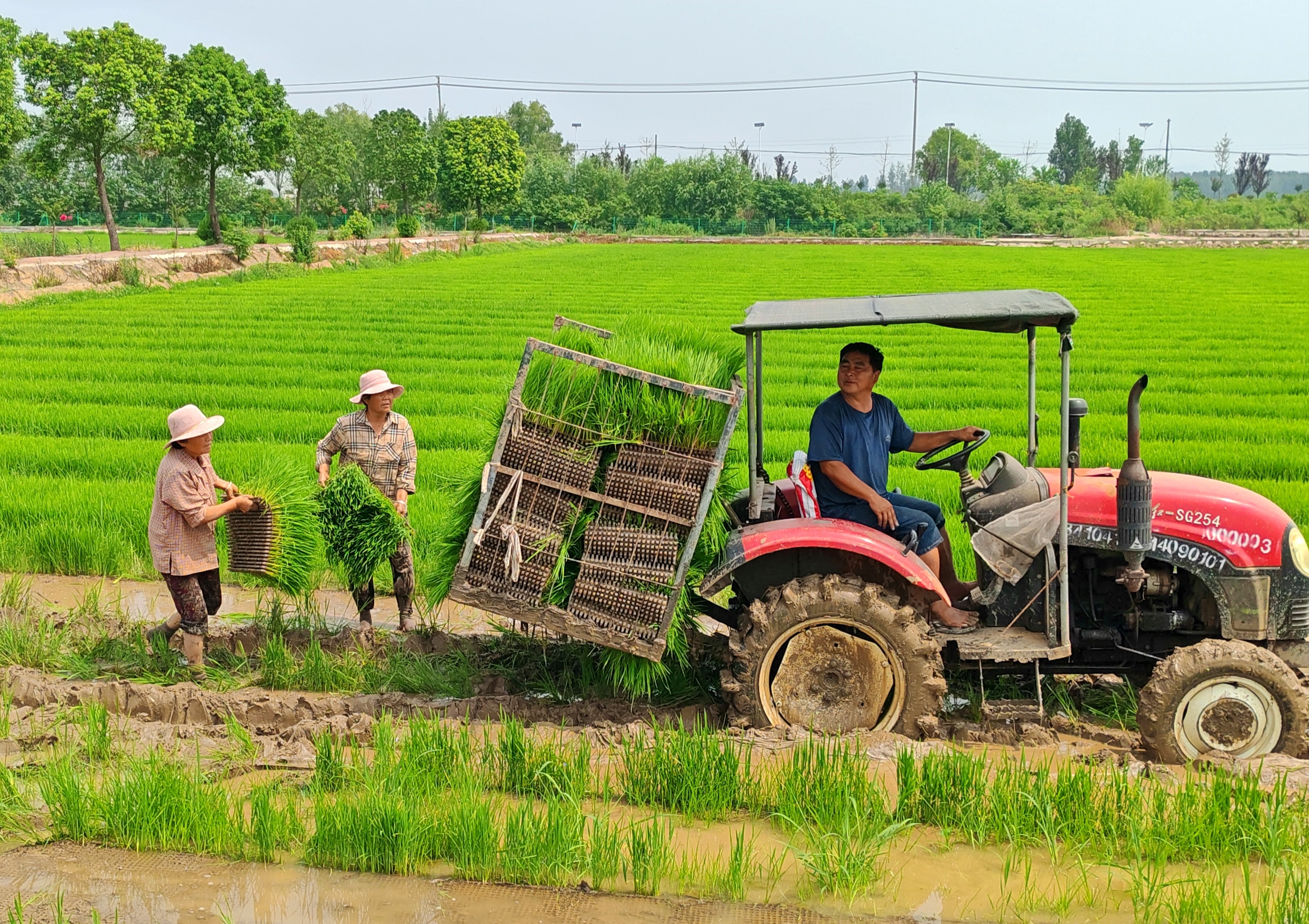 6月24日,湛河区曹镇乡黄庄村村民在采用飞播和抛播的方式种植水稻。夏播一粒种,秋收万担粮。眼下正是晚稻播种的关键期。