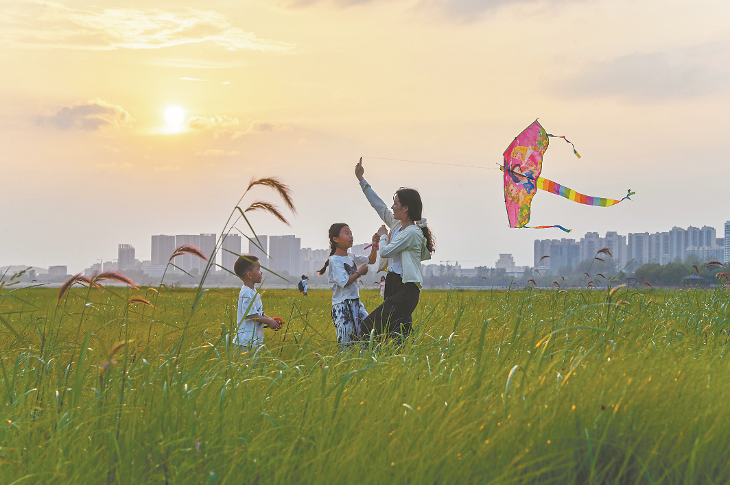 6月28日、29日傍晚时分,在市城乡一体化示范区白龟湖国家湿地公园,微风徐徐,白龟湖畔草浪摇曳,广袤无垠,一派蓬勃景象。市民纷至沓来,感受蓝天、草原带来的自然之美。他们以云朵、绿草为背景,随手按下快门,便是自带柔光滤镜的夏日大片。还有人在草原上逆风奔跑,放飞手中的风筝,阵阵欢笑声不绝于耳······
