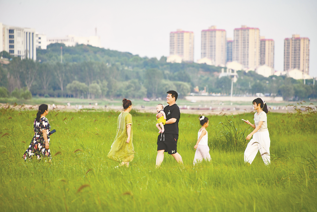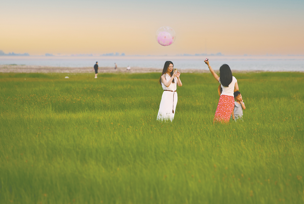 6月28日、29日傍晚时分,在市城乡一体化示范区白龟湖国家湿地公园,微风徐徐,白龟湖畔草浪摇曳,广袤无垠,一派蓬勃景象。市民纷至沓来,感受蓝天、草原带来的自然之美。他们以云朵、绿草为背景,随手按下快门,便是自带柔光滤镜的夏日大片。还有人在草原上逆风奔跑,放飞手中的风筝,阵阵欢笑声不绝于耳······