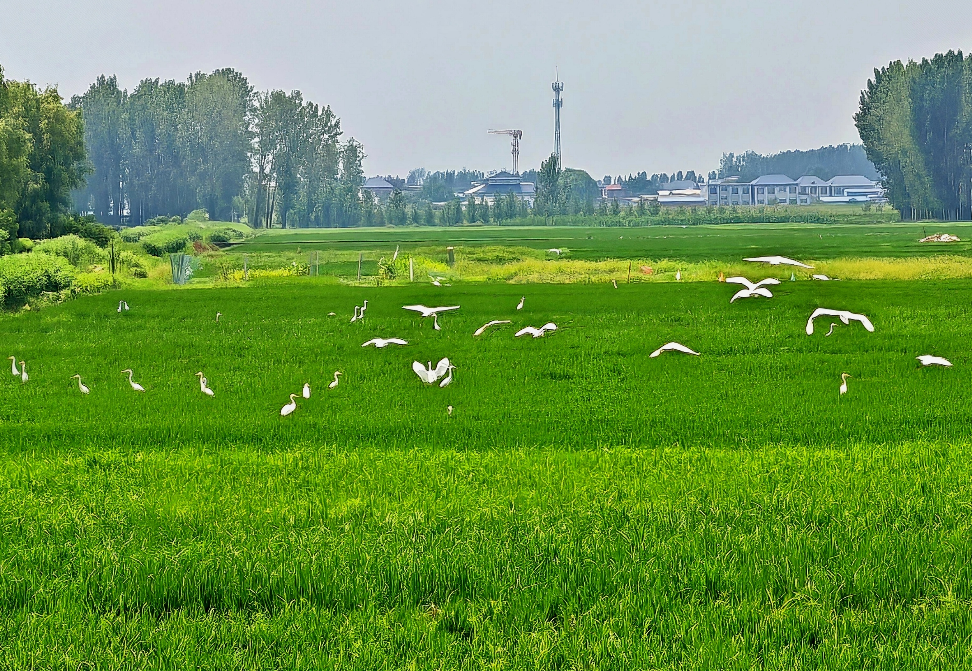 7月25日,成群的白鹭在湛河区曹镇乡的稻田上翩然飞舞。