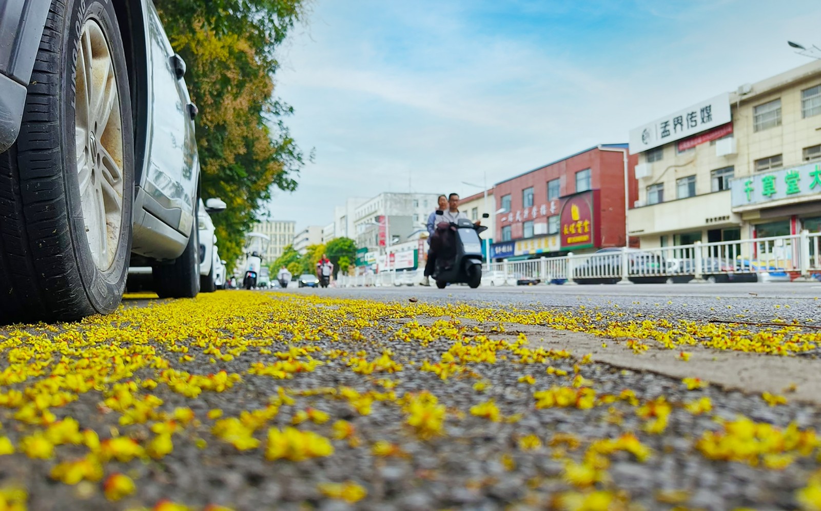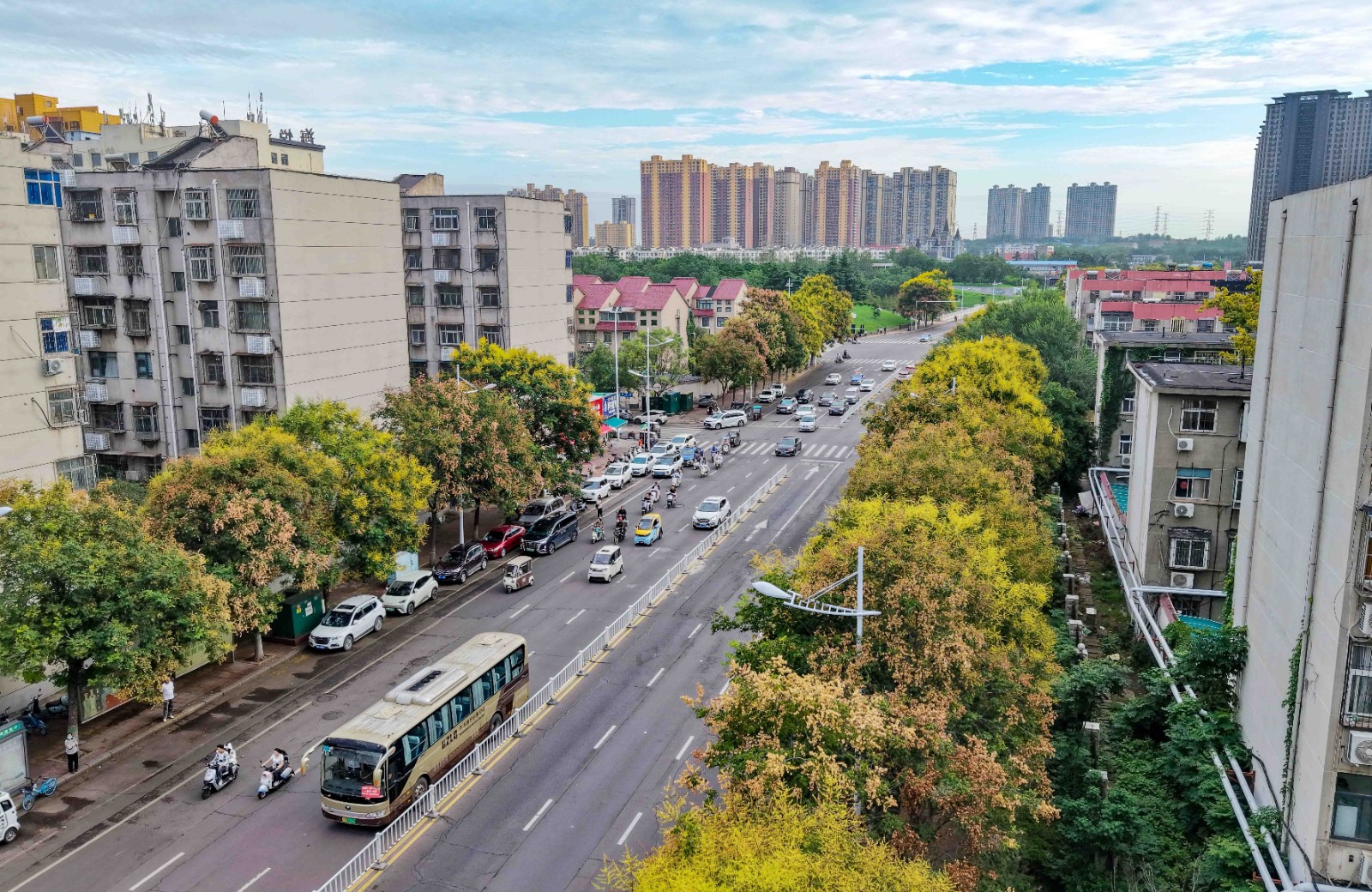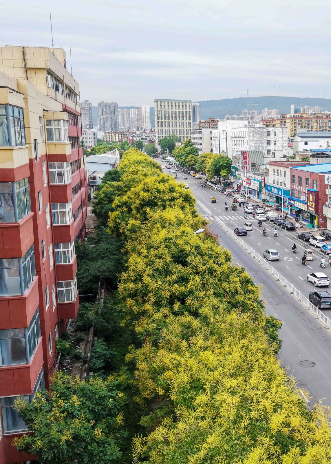 9月6日,在市区凌云路中段,数百米长的行道树花开正艳,从空中俯瞰,整条街如画境一般。据了解,这种树木是栾树,秋季正值盛花期。有市民称赞,树下抬头,层层叠叠好有治愈感。据悉,市区建设路、园林路、湛河南路均种植有栾树。
