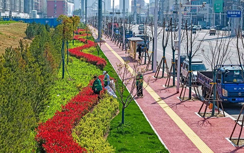 4月1日,平安大道西环路至四矿路区间路面平整畅通、整洁有序,道路两侧新栽种的绿植生机盎然,为城市增添春意,整体面貌焕然一新。