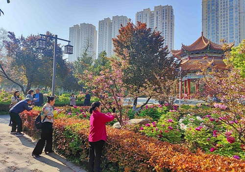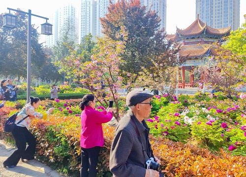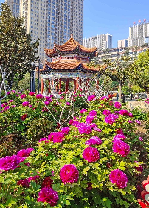 4月1日,市工人文化宫八角亭周边的牡丹园,300余棵牡丹竞相绽放。目前,这里牡丹盛开,吸引不少市民前来赏花拍照。