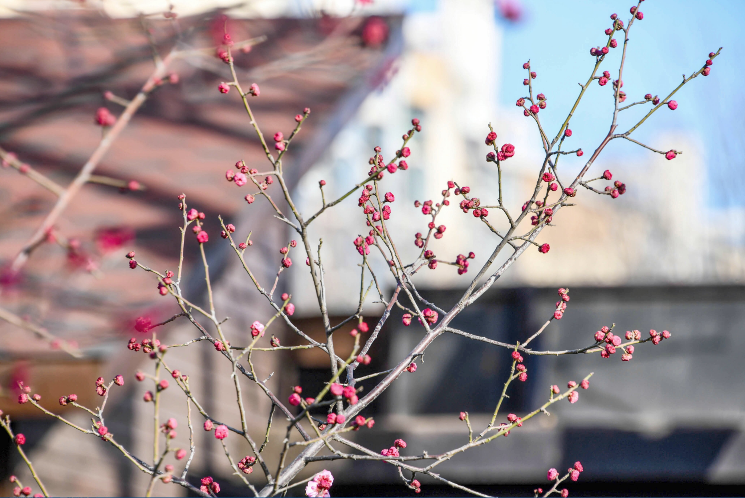 暖阳下梅花红