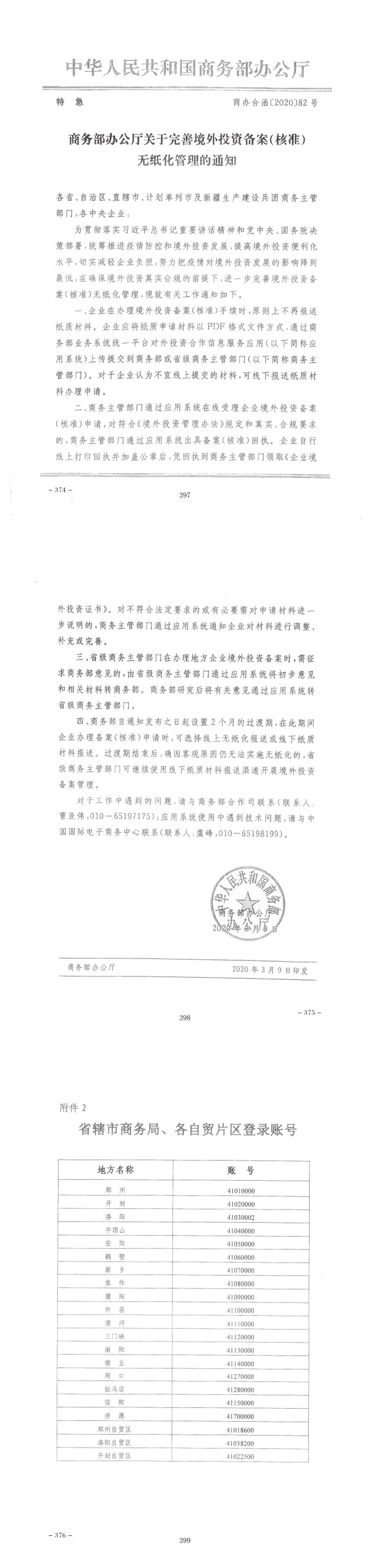 商务部办公厅关于完善境外投资备案(核准)无纸化管理的通知