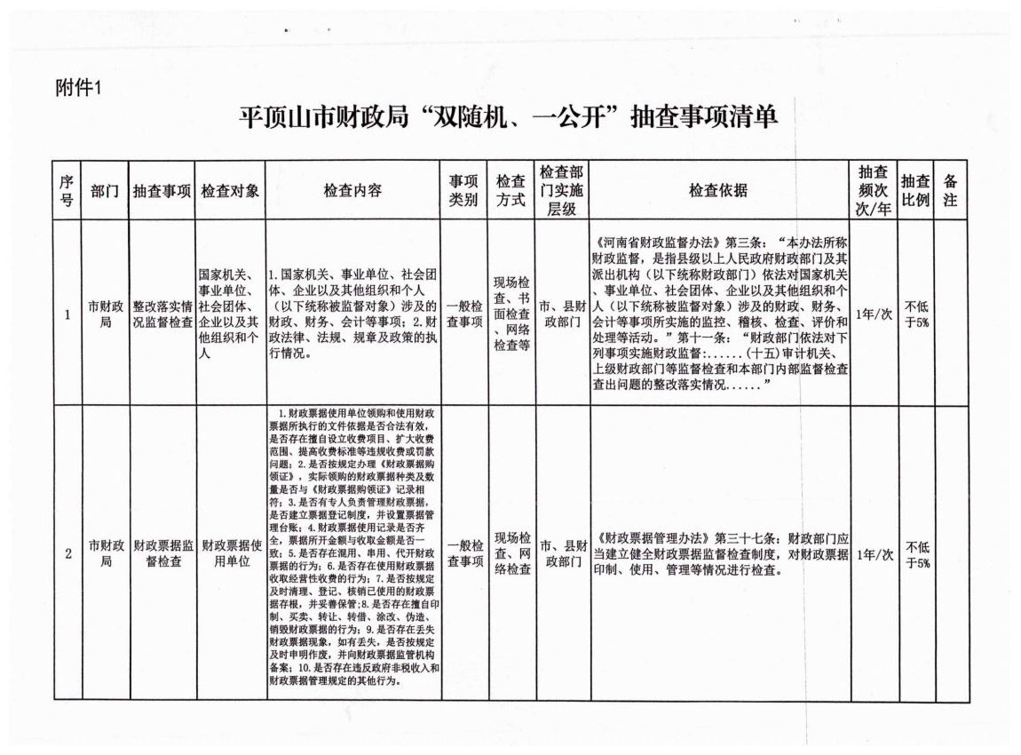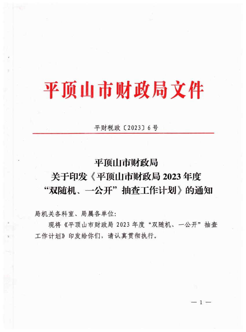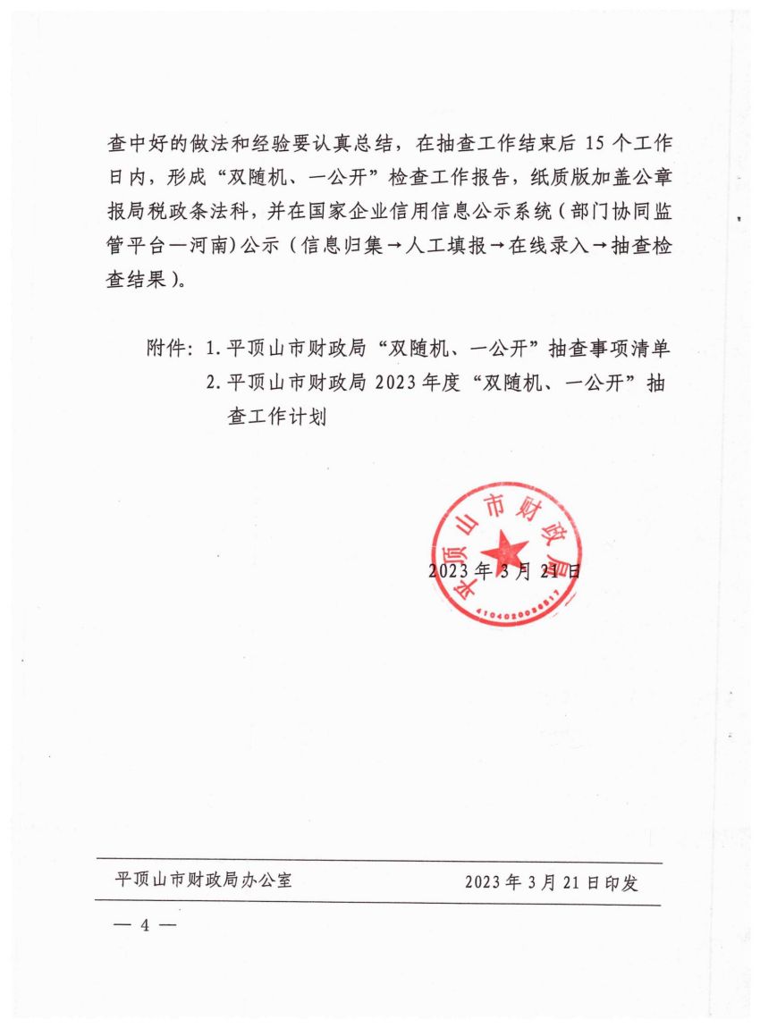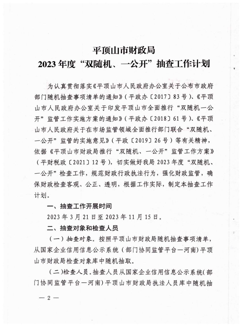 平顶山市财政局关于印发《平顶山市财政局2023年度“双随机、一公开”抽查工作计划》的通知