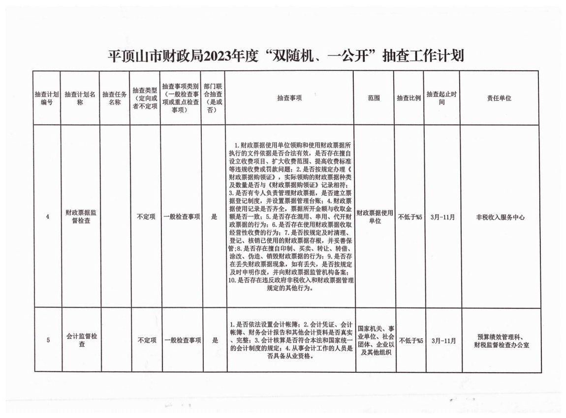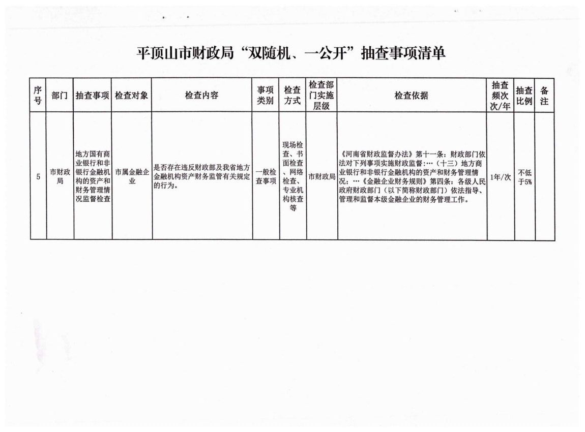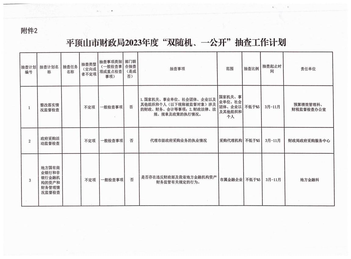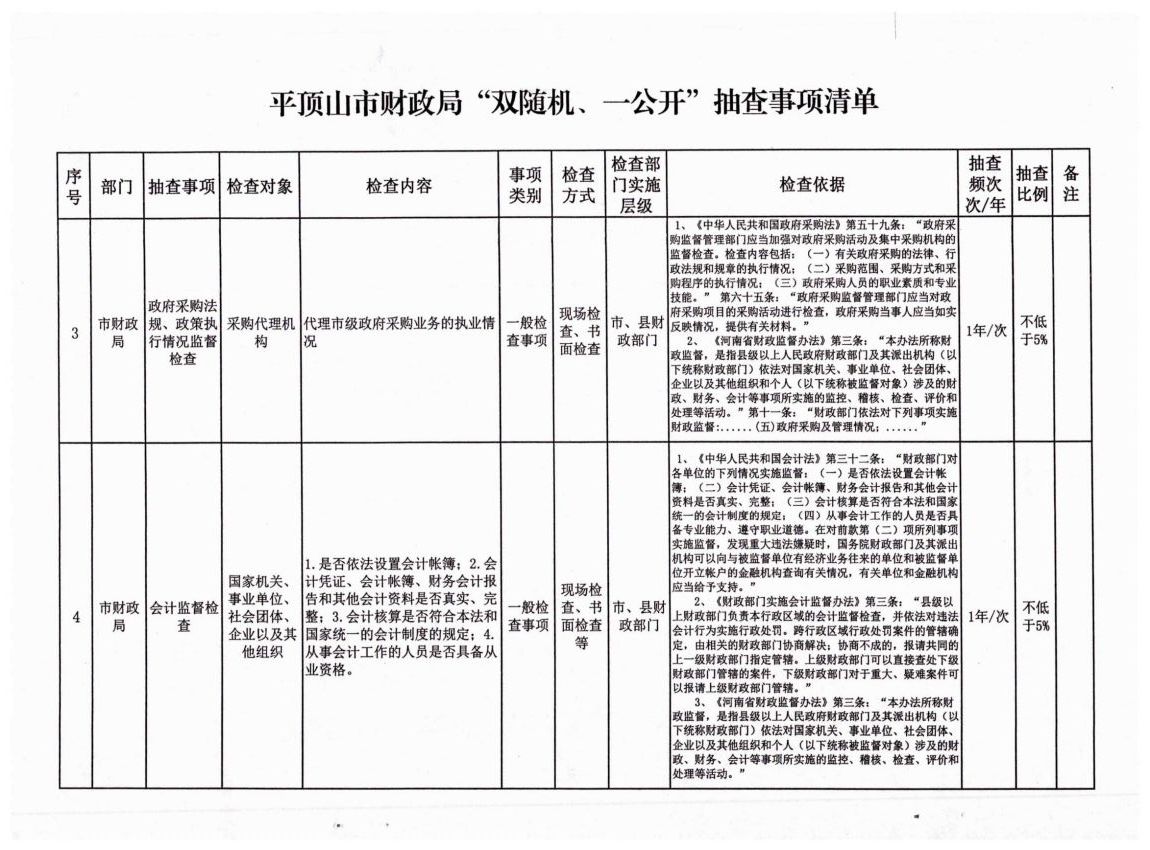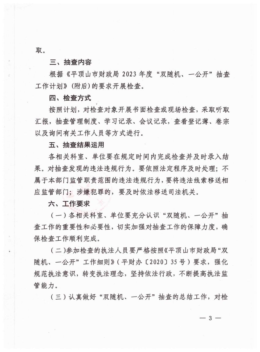 平顶山市财政局关于印发《平顶山市财政局2023年度“双随机、一公开”抽查工作计划》的通知