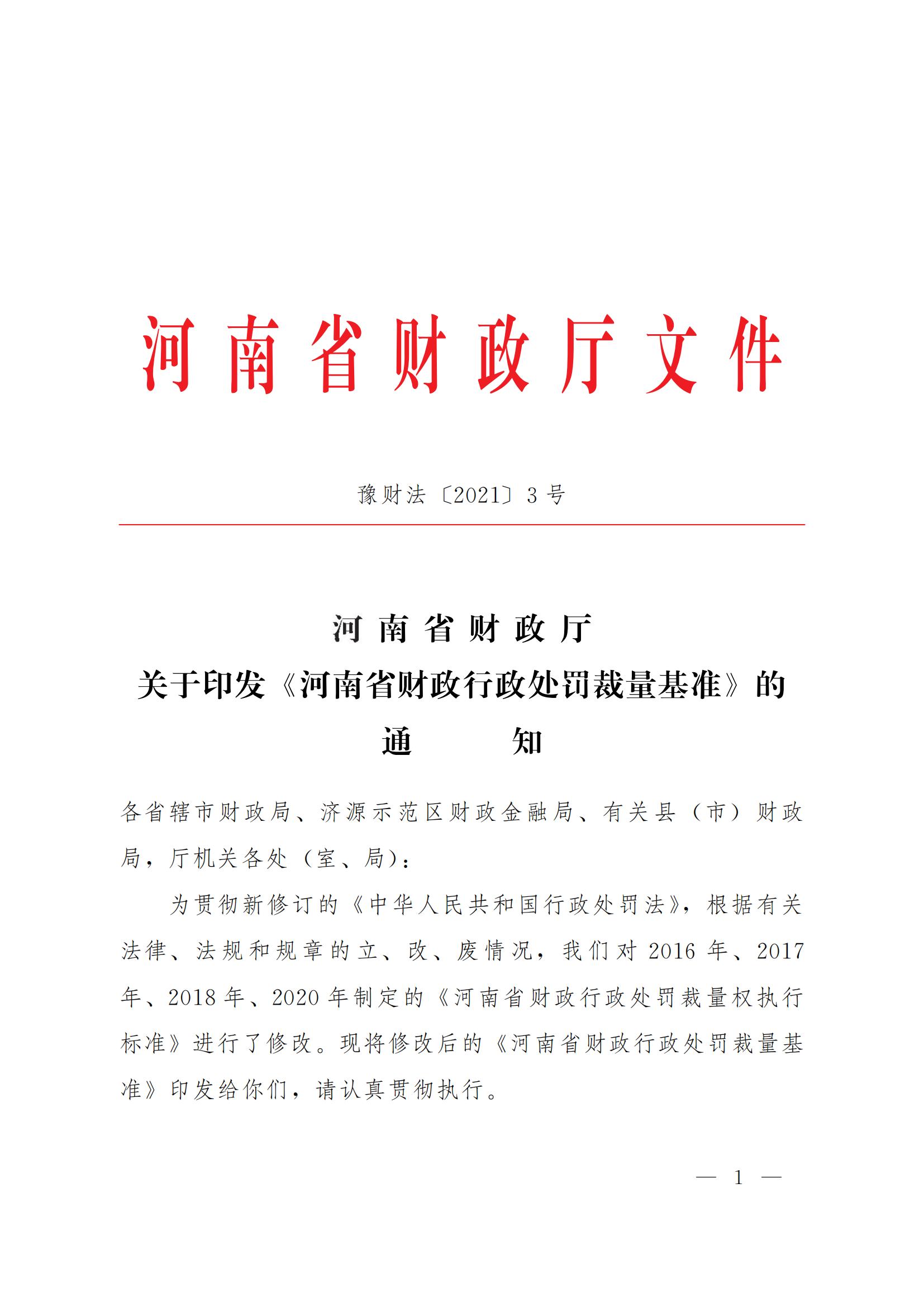 河南省财政厅关于印发《河南省财政行政处罚裁量基准》的通知.pdf