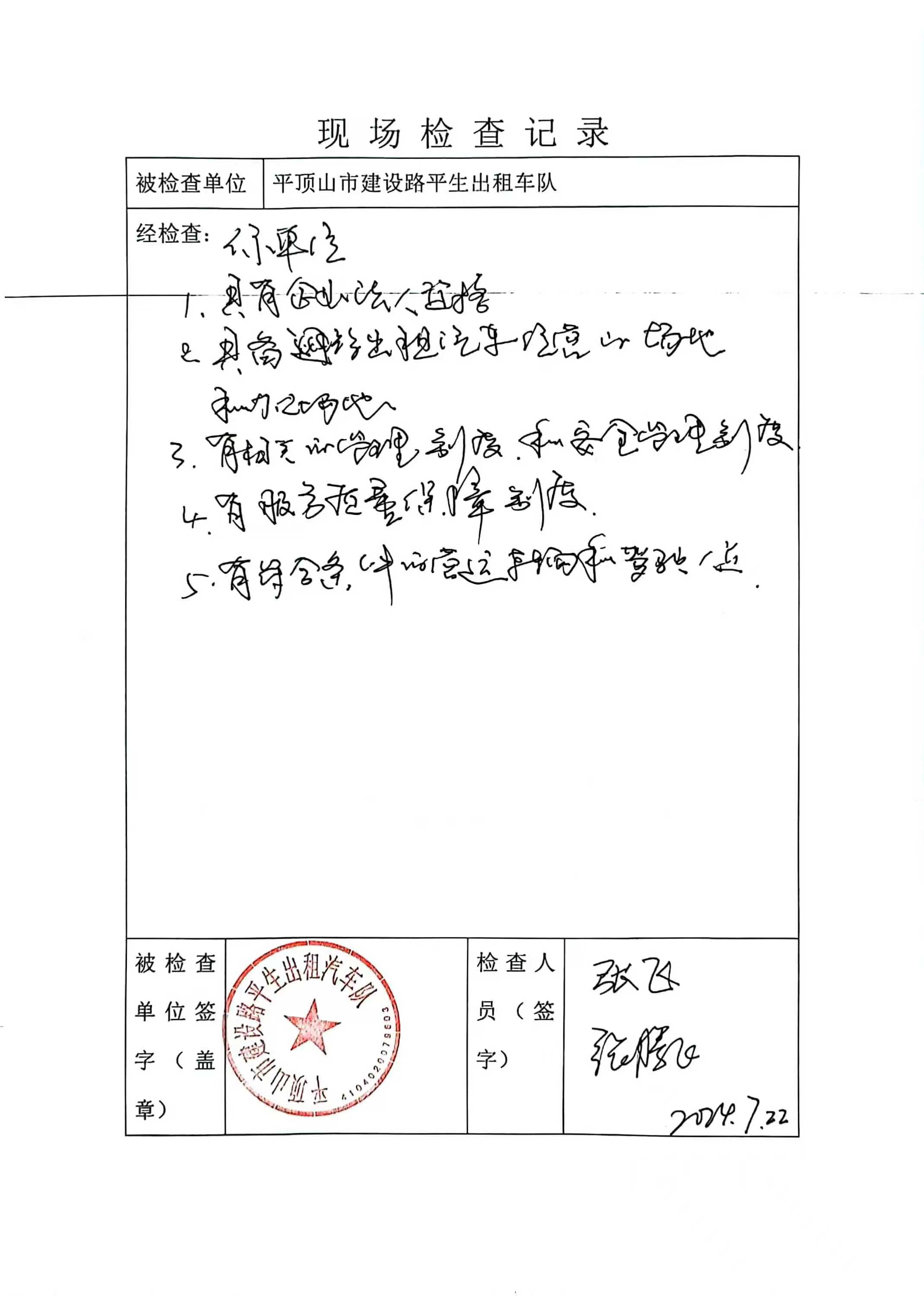 对平顶山市建设路平生出租汽车队经营资质的抽查“双随机、一公开”行政检查结果公示