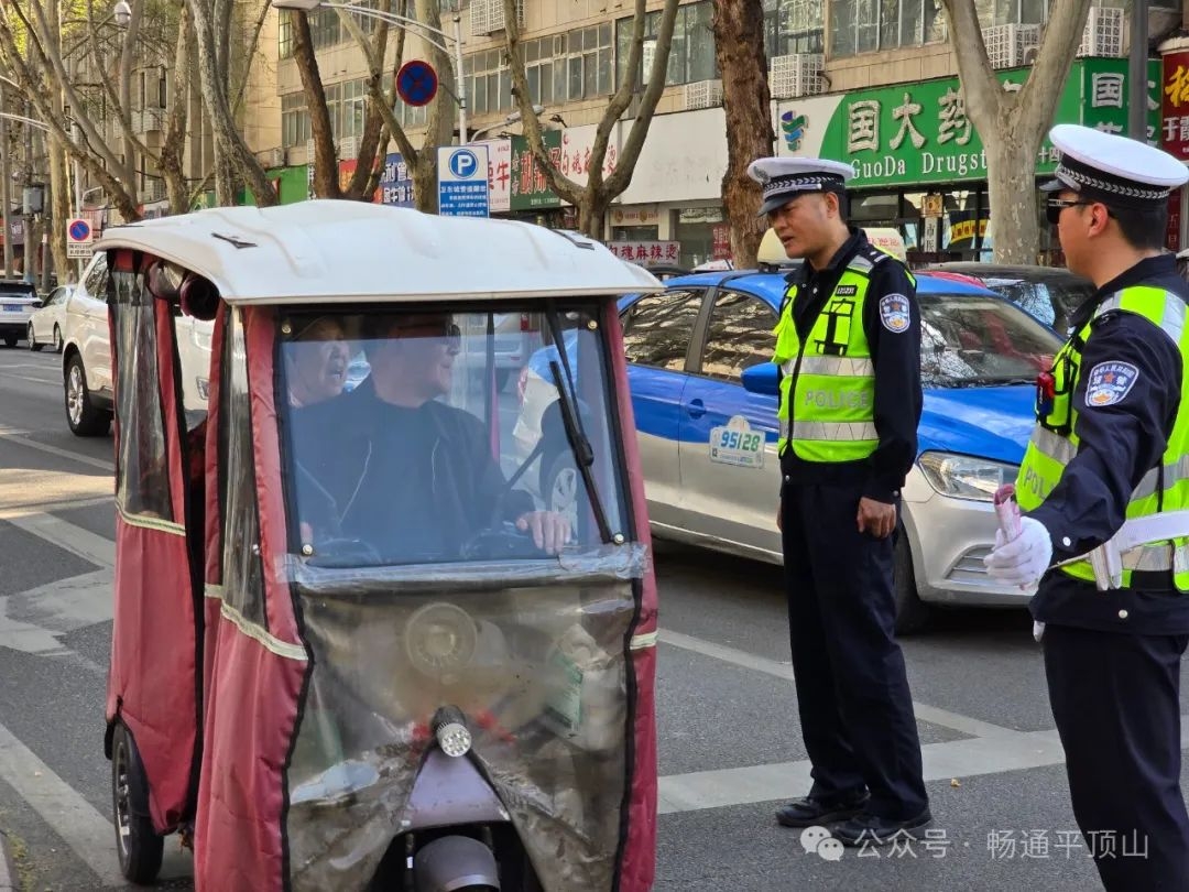 为进一步加强道路交通安全管理工作,规范电动车通行秩序,提升骑乘人员守法意识、安全意识、文明意识和自我防护能力,近日,平顶山公安交警围绕“整治、宣传、劝导”,持续开展电动车交通违法专项整治行动,全力确保辖区道路交通安全、畅通,积极营造良好的道路交通环境。
