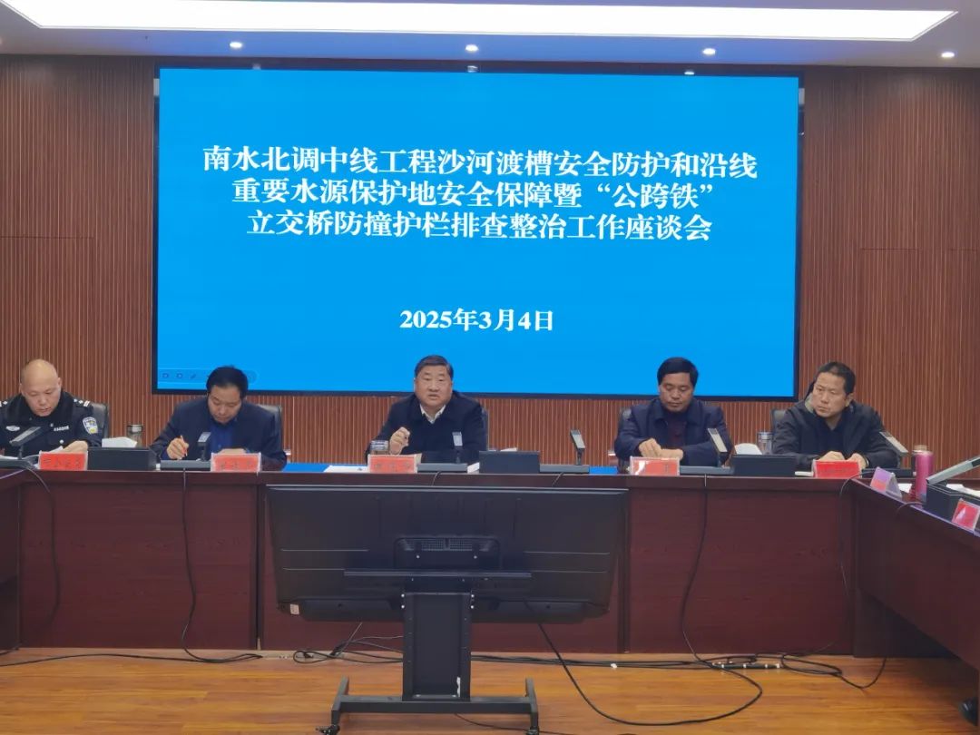 会议要求,一是围绕一条主线,确保南水北调工程及水源安全。二是抓好三项任务:确保南水北调中线工程沙河渡槽下穿公路重点部位安全防范;沿线重要水源地水质安全保障;全市公跨铁立交桥防撞护栏排查整治。三是做到六个到位:思想认识到位,组织领导到位,安排部署到位,防范措施到位,协同会商到位,督促巡查到位。四是达成三个目标:一渠清水安全北上;一条道路安全畅通;一道铁路安全运营。