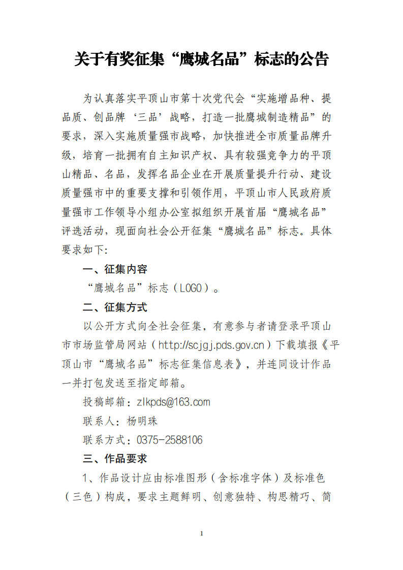 关于有奖征集“鹰城名品”标志的公告