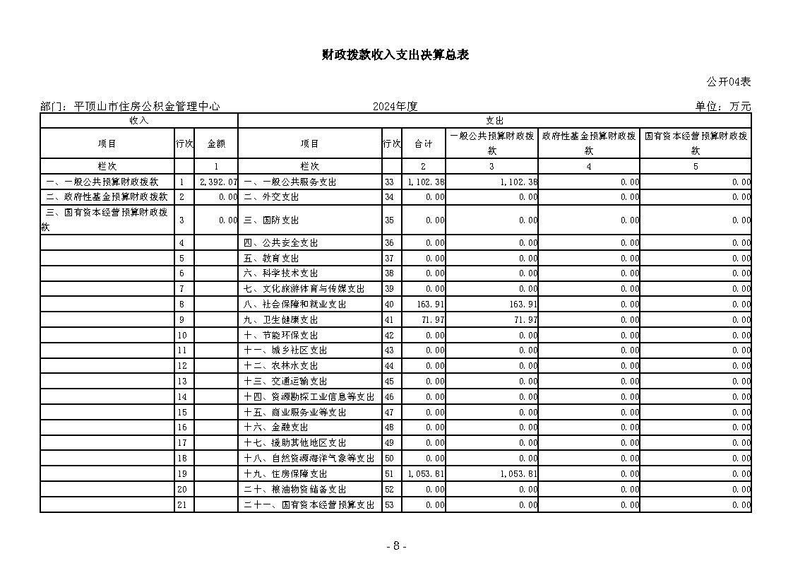 2024年平顶山市住房公积金管理中心部门决算