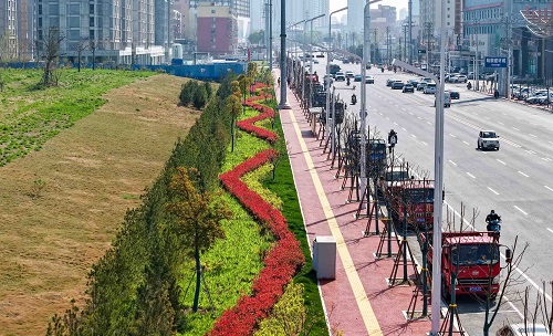 4月1日,平安大道西环路至四矿路区间路面平整畅通、整洁有序,道路两侧新栽种的绿植生机盎然,为城市增添春意,整体面貌焕然一新。