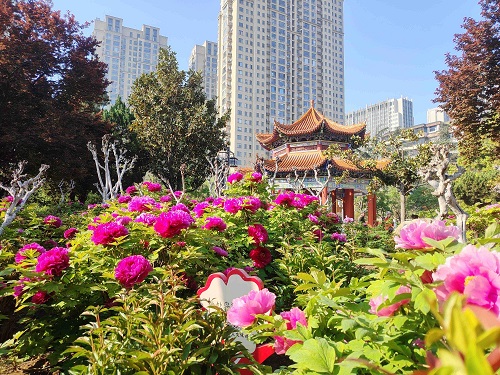 4月1日,市工人文化宫八角亭周边的牡丹园,300余棵牡丹竞相绽放。目前,这里牡丹盛开,吸引不少市民前来赏花拍照。
