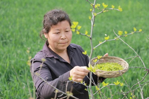 在该示范区宋沟村的酸枣芽加工作坊里,负责人李克阳忙个不停。据他介绍,今年春季酸枣芽采摘期预计持续20余天,以每斤(1斤=500克)15元的价格收购。
