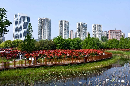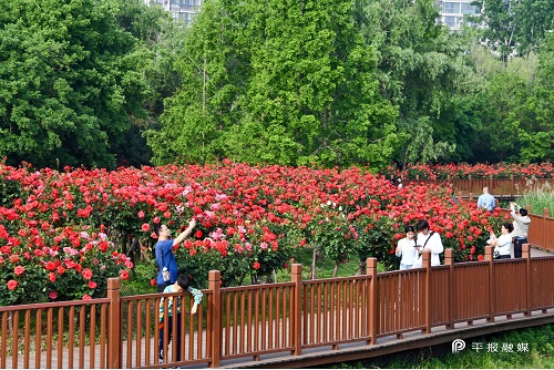 近日,在市城乡一体化示范区的公园、游园里,月季大面积开放,迎来盛花期。缤纷花海错落绽放,满城芬芳。